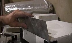 - Нагревательная камера изготавливается из шамотного огнеупорного кирпича или же плит ШПГТ-450, устойчивых к экстремально высоким температурам и химически нейтральных к воздействию щелочей или кислот. Плиты более удобны в использовании, так как имеют достаточно большие линейные размеры. Поэтому, в отличие от кирпича, из одной плиты можно сразу изготовить одну стенку камеры. Кроме того, они обладают оптимальной для подобных условий эксплуатации толщиной, составом и структурным строением, что позволяет быстро нагнетать и поддерживать внутри печи необходимую температуру.