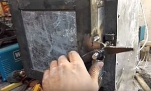 Монтируются дверцы на навесные петли, которые фиксируются на каркасе с помощью сварки. Дверца может быть распашной, откидной или даже съемной, если, например, предполагается изготовить печь, открывающуюся сверху. Последний вариант скорее можно назвать крышкой, нежели дверце. Он довольно удобен в эксплуатации, но вот практичным его никак не назовешь — при снятии крышки камера сразу открывается по все длине, что способствует быстрой и массовой утечке выработанного тепла.
