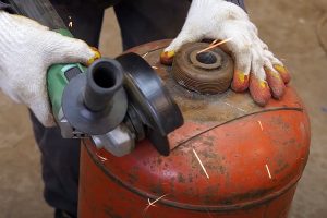 Откровенно говоря, только промывка кажется половинчатым решением – лучше не манкировать еще и пропаркой баллона. Известны случаи, когда после промывки в ёмкости все равно набиралась опасная концентрация пропана. Или же делать первые рез «по воде», чтобы полностью исключить эффект хлопка от искр шлифмашинки.