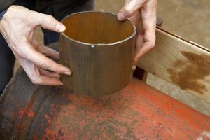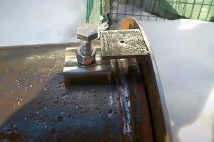 Чтобы по максимуму временно зафиксировать положение вставленного в цилиндр колпака (дабы он не сдвигался при обработке шлифмашинкой), можно постараться его пригрузить какой-то тяжёлой металлической заготовкой или деталью – что найдется в хозяйстве.