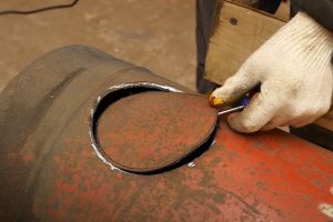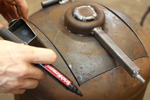 То есть даже совершенно пустой, по вашему мнению, баллон необходимо подготовить к раскрою, чтобы гарантированно не допустить скопления в нем взрывоопасной смеси. Применяют различные способы – промывка, пропарка, проветривание автомобильным выхлопом и другие способы. Чаще всего домашние мастера останавливаются на промывке, а затем, для пущей безопасности — на первом резе баллона «по мокрому», то есть тогда, когда емкость заполнена водой.