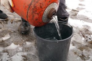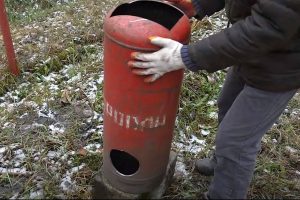 Дав воде постоять в баллоне около получаса, ее затем сливают. Чтобы не испортить себе атмосферу на участке, жидкость следует переливать исключительно в ведра с последующим выносом и сливом туда, где запах газа не будет никому досаждать.