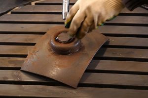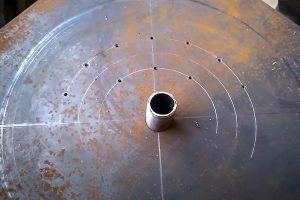 Затем на тонкой пластине сверлят маленькие отверстия – с их помощью удобнее всего наметить окружности (дуги), по которым расположатся отверстия подачи воздуха.