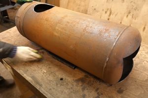 После того как баллон «вскрыт» — угрозы взрыва больше не остается. И можно переходить к творческой работе – в нашем случае это изготовление печи для мастерской или гаража.