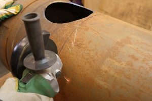Ну а затем – в ход пускают «болгарку», сначала с отрезным, а затем со шлифовальным круглом.