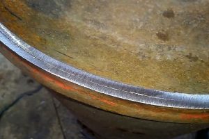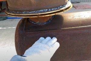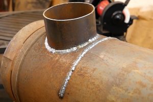 К цилиндру приварены две полусферы: верхняя (поз. 3) имеет горловину, нижняя (поз. 4) – сплошная. Круговые сварные швы (поз. 5) также хорошо видны на поверхности баллона. Кроме того, внутри баллона подо швами расположены приваренные усиливающие пояса в виде металлических колец (поз. 6). Это тоже обязательно учитывается при раскрое баллона на заготовки – лучше от линии шва отступить вверх или вниз минимум 15 мм, чтобы не резать кольцо.