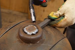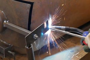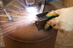… и прихватывать шпильку к стальной заслонке.