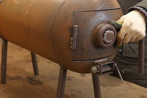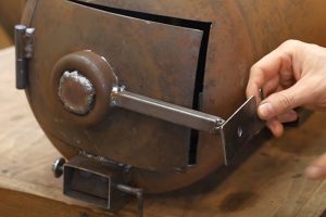 С противоположной от петель стороны люка продумывается конструкция надежного запирания камеры сгорания.