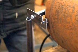 Варианты могут быть разными – в показываемом примере выбран вот такой, с самодельными кронштейнами, которые убудут привариваться соответственно к корпусу баллона и к крышке.