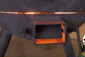 Наконец, чтобы закончить с узлом крышки и подачи первичного воздуха – покажем положение задвижки (малой пластины), когда все отверстия открыты, приток воздуха в камеру сгорания – максимальный.