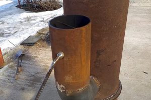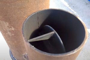 В завершение раздела можно сказать, что печь зарекомендовала себя в эксплуатации даже лучше самых смелых ожиданий. Из дымохода выходит практически прозрачный поток, что уже само по себе говорит о высоком качестве дожига газов. А вертикальная камера так раскаляется, что вполне можно приварить к ее верхнему колпаку нечто вроде плиты, чтобы ставить чайник или кастрюлю. И в течение цикла прогорания закладки (а это не много – не мало около 6÷7 часов) печь не требует к себе внимания.