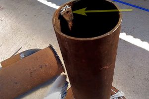 На верхнем своем краю труба заглушена и прихвачена к стенке большой трубы – просто для стабильности своего положения.