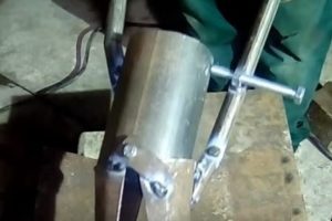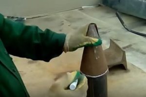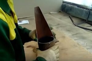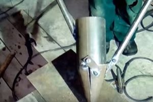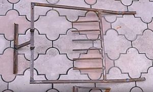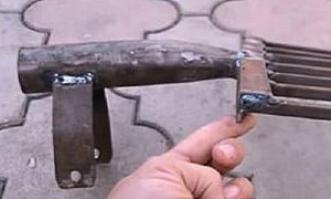 - Далее, изготавливаются ручки инструмента. Концы труб, предназначенные для них необходимо согнуть так, чтобы их было удобно держать в руках. А затем на загнутые концы рекомендуется надеть отрезки шланга. Так руки не будут скользить при проведении работ.