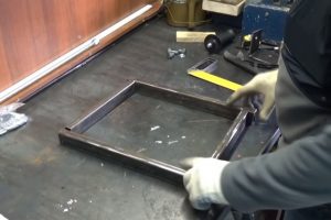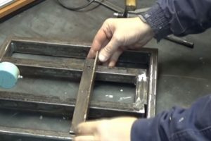 Важно – необходимо сделать раму в форме правильного прямоугольника. Пары деталей должны быть точно одного размера. Углы тщательно контролируются, временно фиксируются магнитными держателями, а затем прихватываются сваркой.