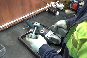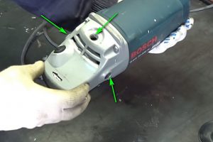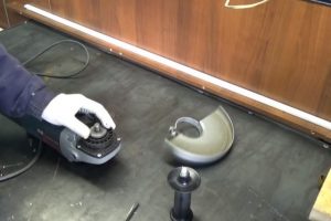 Для этого сначала со шлифмашинки снимается круг, рукоятка и ограждение.