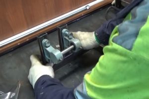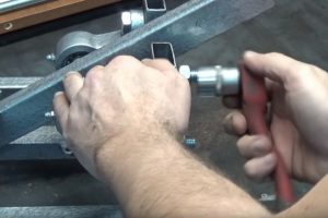 В трубе на расстоянии 250 мм от края просверливается сквозное отверстие, в которое заводится ось, идущая в комплекте с подшипниковыми блоками.