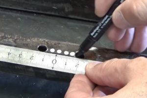 Для начала нужно керном наметить центр сквозного отверстия, с отступом 12 мм от края.