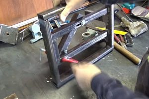 Если мастер планирует в основном заниматься слесарными операциями, то ему потребуется уже совершенно иной верстак, предназначенный именно для таких целей. Здесь, в отличие от столярной «классики» – неисчислимое количество возможных вариантов. как правило, для изготовления используются стальные профили (уголки, швеллеры, профильные трубы) и листы. Один из вполне достойных вариантов показан в видеосюжете ниже: