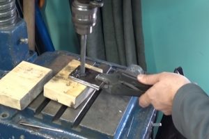 - а затем – сверлом диаметров в 10 мм просверливается верхняя стенка станины.