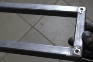 Вот что получилось: с верхней стороны рамы – две вваренные гайки под стойки…