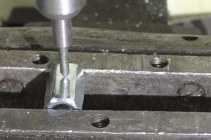 Затем очень аккуратно, строго перпендикулярно оси гайки сверлится сквозное отверстие диаметром 8 мм.