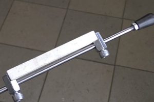 Надо сказать, что такой шарнир в «лайт-варианте» – не самый удачный, и оправдывает его только доступность деталей. Но у рабочей штанги получается довольно солидный люфт, что может сказаться на точности выдерживания единого угла заточки по всей режущей кромке ножа.