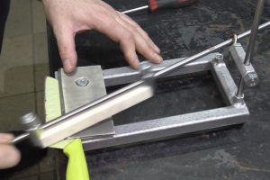 Затем брусок можно сменить на другой, с мелким абразивом, чтобы довести заточку до максимальной остроты режущей кромки.