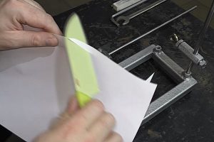Можно сделать замечание и по креплению брусков. Если предполагается их смена по ходу заточки, то они обязательно должны иметь одинаковую толщину, иначе изменится угол. Многие мастера советуют и иные подходы. Вместо брусков у них подготовлено несколько стальных пластин одинакового размера. На пластины наклеивается абразивная бумага. Две стороны – это уже два разных уровня зернистости. То есть можно подготовить комплект на все стадии заточки: от грубого формирования режущей кромки — до ее полировки.