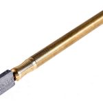 Алмазные стеклорезы различаются еще и типом заточки кристалла. В моделях «любительского» класса чаще всего режущая кромка имеет криволинейную форму, и расположена она соосно рукоятке.
