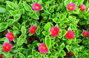 Аптения (Aptenia) отличается своей декоративностью благодаря небольшим цветам белого, сиреневого или яркого розового цвета, выделяющимся на фоне мелких мясистых ярко-зеленых листьев.