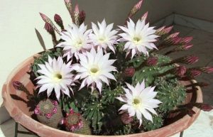 Очень красиво и необычно выглядит цветение многих кактусов — и это становится поистине «изюминкой» флорариума
