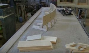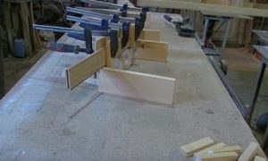 Потребуется как минимум шесть полос, которые перед установкой на стапели и зажимом в струбцинах, промазываются ПВА или другим столярным клеем.
