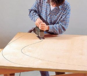 После того как чертеж будет перенесен на фанеру, детали по очереди выпиливаются с помощью электрического лобзика.