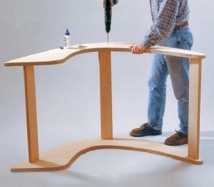 После того как боковые детали будут соединены между собой царгами, конструкцию поворачивают набок и скручивают мебельными саморезами или конфирматами. На каждый из соединительных узлов потребуется по два крепежных элемента. Для того чтобы перемычки не растрескались, перед вкручиванием конфирматов под них просверливаются отверстия – лучше всего для этого использовать специальную фрезу.