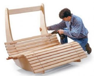 Последняя оговорка была сделана не случайно, так как изготовление такого кресла – задача не из простых. Сложность создания качалки состоит в правильной балансировке лекальных элементов, так как если она не будет достигнута, кресло начнет опрокидываться или же просто не будет способно выполнять основную свою функцию — качаться без риска перевернуться. Причем, выбирая готовый проект или же создавая собственный, необходимо учитывать разный вес членов семьи.