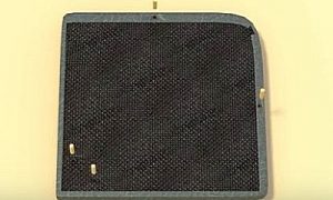 - Следующим шагом на столе расстилается изнаночной стороной вверх обивочная ткань или кожзаменитель. Размер этого материала должен превышать размер панели на 80÷100 мм, в зависимости от толщины поролона. Излишки должны выступать со всех сторон детали примерно на одинаковую ширину – они пойдут на подворот и закрепление обивки.