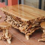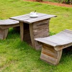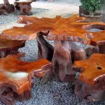 Оригинальная мебель для летней кухни получается из пней. Большой для стола, 3-4 поменьше, стулья. Проблема только в поиске их в лесу и привозе. Лучше конечно бареза или дуб, но могут подойти и другие. Изготовления почти нет. Ровный спил с двух сторон, зачистить и 4-5 раз покрыть лаком. Мебель готова.