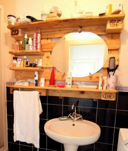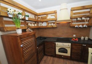 В этом случае поддоны применены для изготовления навесных полок, которые также никогда не станут лишними на кухне. На них можно будет разместить как декоративные аксессуары для оформления интерьера в выбранном стиле, так и функциональные предметы.
