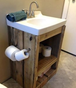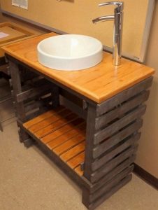 Необходимо отметить, что при желании и столешница может быть сделана из досок от паллет, но детали придется хорошо подогнать друг к другу, надежно заделать все зазоры, обеспечив герметичность поверхности.