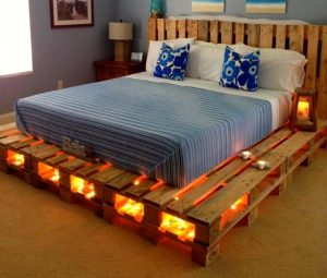 Они могут быть использованы в качестве прикроватной тумбочки для установки светильников или для хранения любимой книги или гаджета. Поэтому эти части паллет после сборки лучше всего обшить фрагментами фанеры.