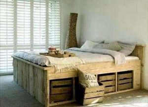 Мебель из поддонов для спальных также популярна, особенно если эти помещения оформляются в стиле «лофт». Кровати из такого материала надежны и практичны, а при желании их можно декорировать, сделав их конструкцию более эстетичной. Хотя, используя мебель из паллет в направлении «лофт», дизайнеры не скрывают, а, скорее, подчеркивают материал изготовления каркасов кровати. Ну а если для оформления комнаты выбран другой стиль, то можно надежно замаскировать каркас, обшив его хорошо обработанными досками и окрасив их в подходящий цвет.