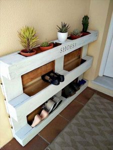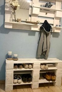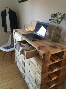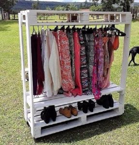 Как правило, спальня соседствует с гардеробной. К сожалению, не в каждой квартире или доме существует возможность обустройства отдельного помещения для хранения вещей. Поэтому представленная конструкция, созданная из паллет, станет отличным решением проблемы, так как может быть установлена в углу основного помещения.