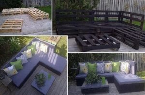 Изделие, представленное на последней иллюстрации, отличается от европаллет тем, что изготавливается из досок одинакового сечения — 100×25 мм, и из отрезков бруса 100×100×80 мм. Изготавливать различные детали мебели из такого материала — гораздо удобнее, чем из элементов разных размеров. Поэтому подобный вариант лучше всего подойдет для домашних мастеров.