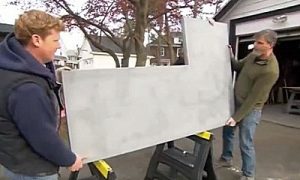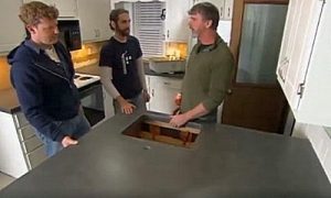 Однако, не следует забывать, что столешница, состоящая полностью из бетона, да плюс еще и с металлическим армирующим каркасом, получится очень тяжелой. Поэтому имеет смысл обратить внимание на идею, поданную американскими мастерами.