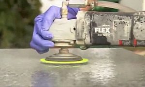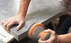Полировка поверхности столешницы происходит по тому же принципу, что и ее торцов. Однако если кромки приходится в основном обрабатывать вручную, то для шлифовки большой площади чаще применяется эксцентриковая шлифовальная машинка, на которой меняются насадки. Полировку следует проводить без нажима, так как материал на акриловой основе с каменными вкраплениями может потерять часть пластика верхнего слоя. Результатом интенсивной обработки станет неровная поверхность, так как твердые камни будут выступать из основной плоскости.