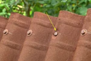 Сразу необходимо приобрести и требуемое количество гвоздей. Они тоже должны быть оригинальными – самодеятельность здесь недопустима. Гвозди имеют строго определённую длину, гарантирующую надежное крепление листов ондулина через верх волны. Шляпки гвоздей оснащены специальной пресс-шайбой и герметизирующей прокладкой. Цвет шляпки подбирается в зависимости от выбранного цвета покрытия – крепёж на общем фоне становится очень малозаметен.