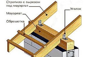 - Если крыша будет расположена под большим уклоном, то на мауэрлате также закрепляются балки перекрытия, обычно с тем же шагом, что и стропильные ноги. Для балок перекрытия может быть использована доска 50×100 мм. Такие элементы конструкции будут особенно необходимы, если планируется произвести обшивку потолка пристройки доской или фанерой.