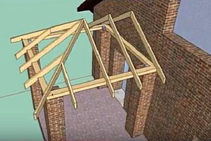 Такой вариант конструкции тоже достаточно труден в монтаже и требует весьма сложных расчетов. Опорные балки, которые становятся основой стропильной системы, должны быть закреплены на стене основного строения, а это значит, что нагрузка на нее и на фундамент — значительно возрастет.