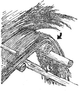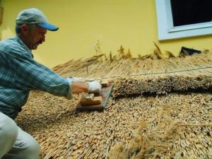 - Перед заброской снопов на крышу их следует обязательно подчистить и подровнять с нижней стороны.