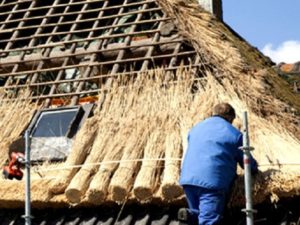 К противопожарным мерам относится обработка настеленного покрытия огнезащитными пропитками. Правда, приходится согласиться, что данное средство со временем вымывается, и пропитку периодически нужно обновлять. Но, кстати, во многих европейских странах камышовые крыши и вообще не покрываются антипиренами – с целью сохранения 100-процентной экологической чистоты покрытия.